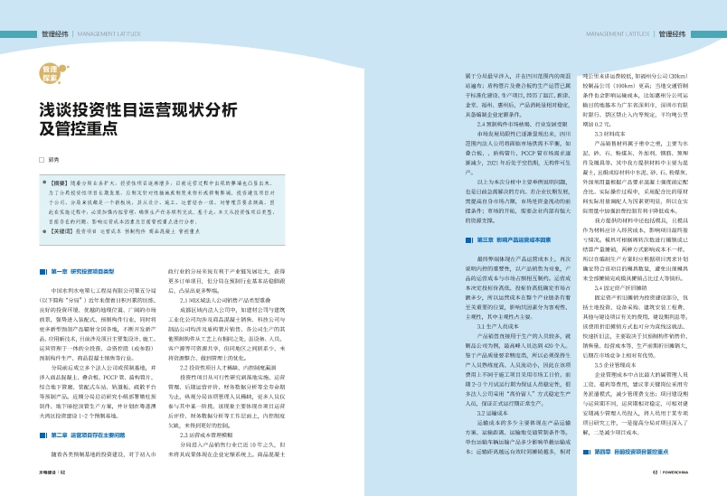 浅谈投资性目运营现状分析及管控重点