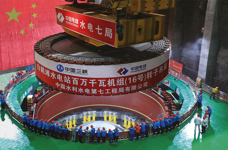 白鹤滩水电站百万千瓦机组(16号)转子吊装