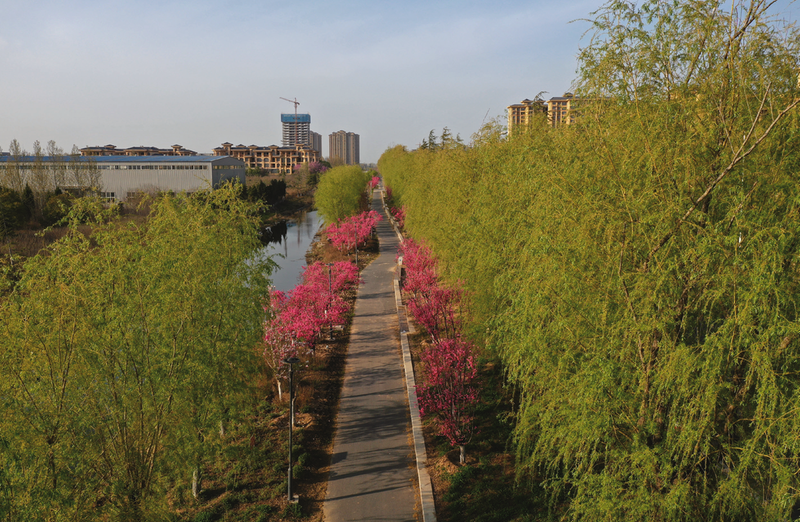 初夏时节,漫步红山庙沟,蜜桃挂上树枝,垂涎欲滴;村民悠闲垂钓,怡然自得。昔日的臭水沟变为生态绿化带,树花草水相映成趣。