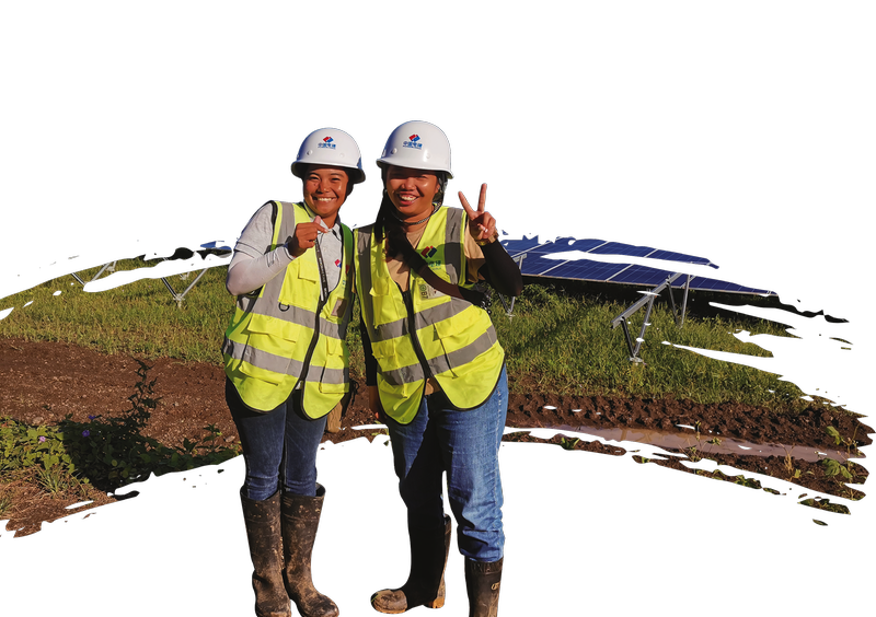 “多美丽”的家乡在北伊罗戈省。她原是家境殷实、“有车有房有存款”的富家子女,身上却丝毫未见千金小姐的娇柔,更多是不畏风雨的坚强。在这里,她先后协助管理试验区、2区、1区、3区的支架及光伏板的安装工作。晴天,工地现场是40多度的高温,灰尘滚滚;台风天气,则是大雨倾盆,一片泥泞。“多美丽”整天在50公顷的工地上来回走动,经历着风吹日晒,再对比她学生时代皮肤白嫩的样子,与现在相比判若两人。