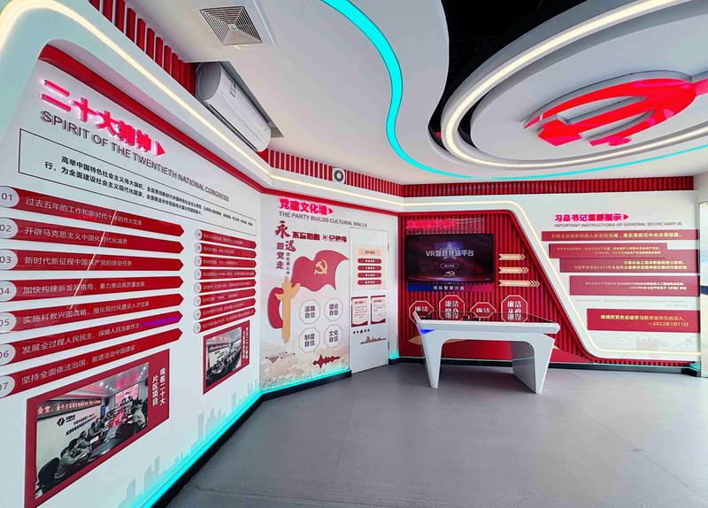 项目智慧信息系统首次添加党建教育板块,通过VR沉浸式地体验红军爬雪山、飞夺泸定桥等,给学习者身临其境的视听体验,实现党建学习方式的新变革、新突破;项目党支部自创开设“一带一路”大讲堂活动,贯彻落实二十大精神及习近平新时代中国特色社会主义思想主题教育分成专题学习的同时,结合房建领域课题研究,展开探讨交流,努力钻研更适应房建市场和公司分局发展规划的管理、工作模式。