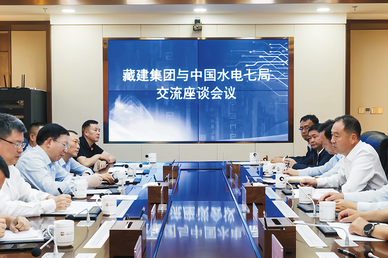 7月11日,公司党委书记、董事长张桥与藏建集团党委书记、董事长庄存伟会谈。(藏建集团 供图)