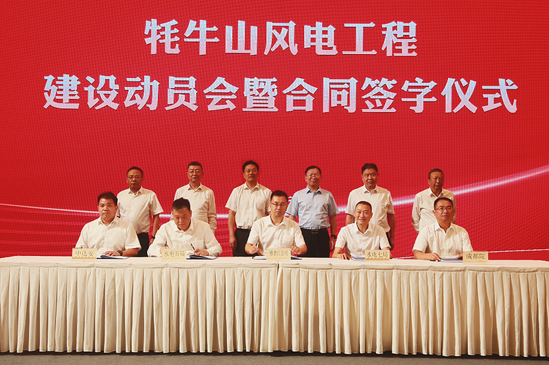 8月7日,公司党委书记、董事长张桥出席牦牛山风电工程建设动员会暨合同签字仪式。(兰鸥 / 摄)