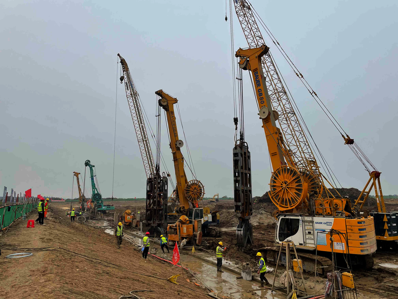 “防渗墙施工是年度关键性节点,从基础开挖到水下混凝土浇筑,必须严格把控质量。”项目副经理赵亮顶着骄阳,在机械的轰鸣声中穿梭于现场每个角落。