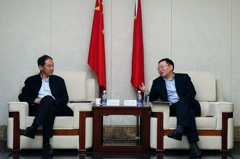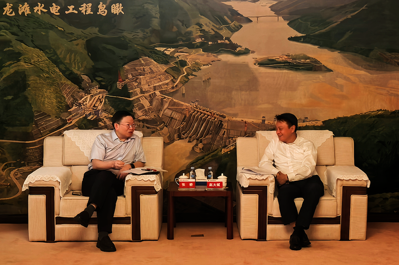 6月4日下午,公司党委书记、董事长张桥与广西桂冠电力股份有限公司党委书记、董事长赵大斌座谈。(戴轩 / 摄)