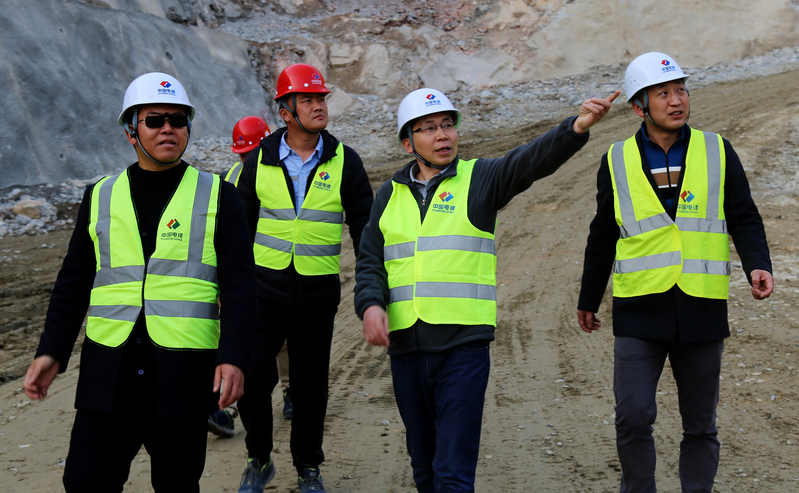 杜宜斌(右二)在项目指导工作 集团特级项目经理、国际公司执行总经理、党委副书记 杜宜斌