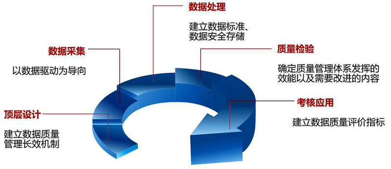 其次应建立数据质量管理制度,考虑由以下几个关键部分组成:数据质量的定义、预期目标及管理范围;数据质量管理的组织保障和职能、职责划分;数据质量管理的具体内容,包括数据标准管理、数据稽核管理、数据监督管理;数据质量评估方案,包括质量评估维度、评估方式和评价指标;数据质量问题处理机制,如:数据质量评估不达标的改进办法、出现不完整、不正确、不唯一等具体数据质量问题时的处理办法;数据运维应急响应措施,包括网络攻击/故障事件应急预案、信息破坏/内容安全事件应急预案、服务器故障应急预案、灾害性事件应急预案等。