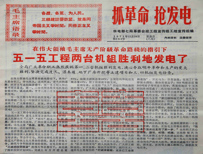 1971年12月26日,《抓革命强发电》报道龚嘴水电站2台机组投产发电