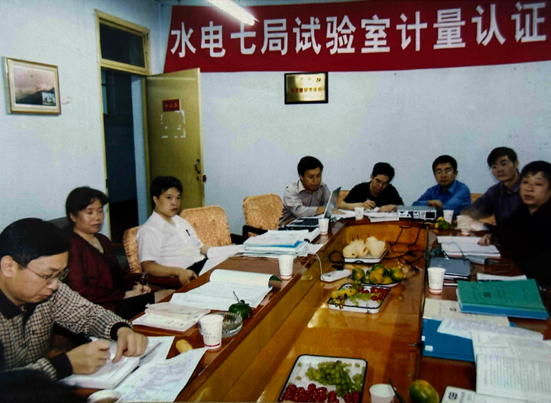1998年,吴勇(左四)参加水电七局试验室计量认证评审会