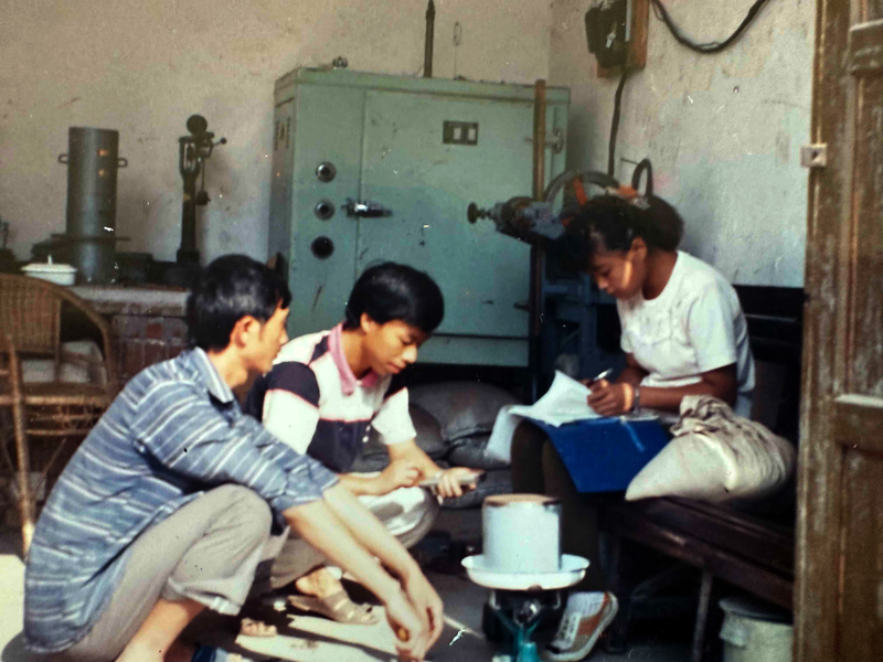 1992年,吴勇(左二)在现场做率定试验 吴勇