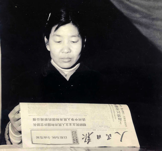 孙树英在看报学习