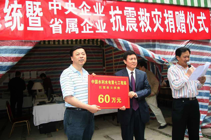 2008年5月15日,四川省国资委在成都举行“省国资委系统中央企业暨省属企业抗震救灾捐赠仪式”,水电七局再次向灾区捐款60万元,此次有18家中央企业和省属企业参与捐赠,我们就是其中之一。