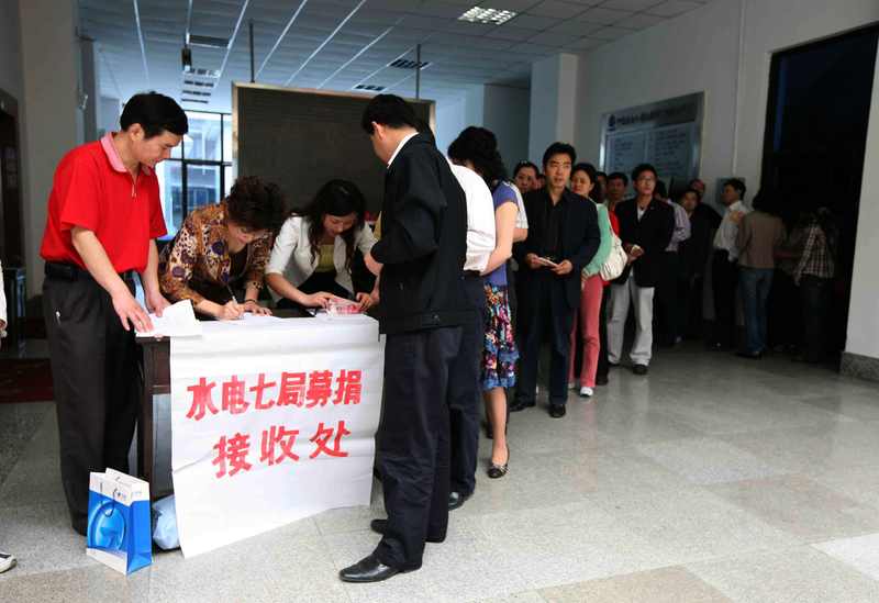 在举全局之力抗震救灾的同时,与历次救灾减灾一样,水电七局及职工家属踊跃捐款捐物。从1965年入川以来,七局人还是第一次经历这么大的地震灾害,更加激发了大家抗震救灾的决心。