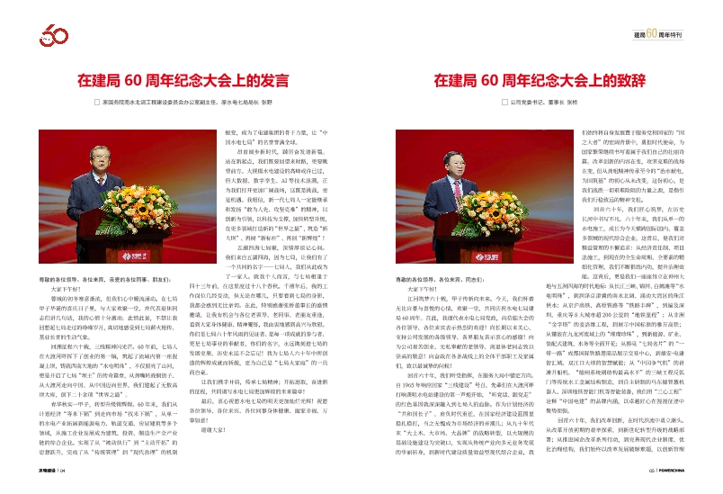 在建局60周年纪念大会上的发言